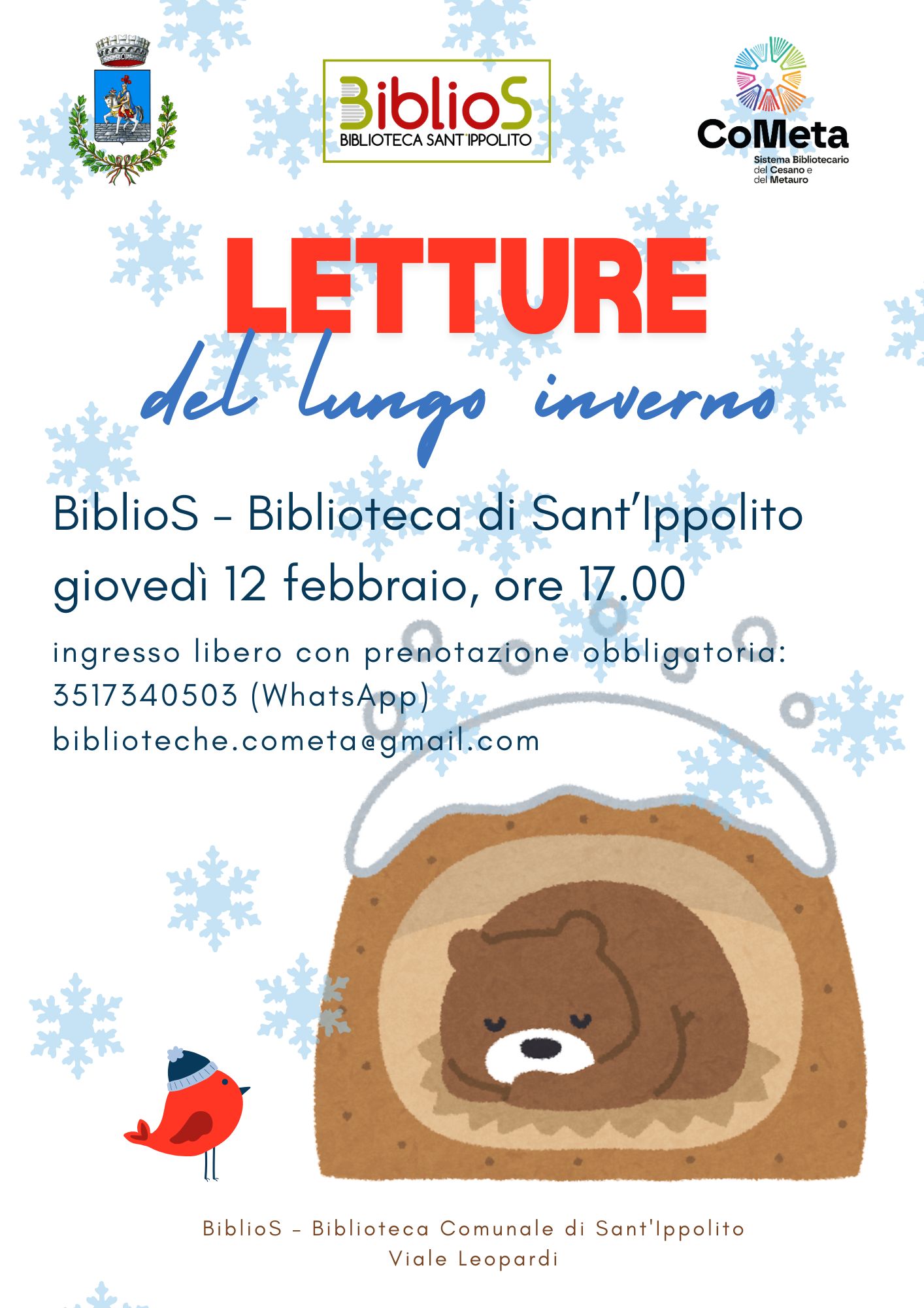 Letture invernali in programma giovedì 12 febbraio alle ore 17:00 presso la Biblios - Biblioteca di Sant'Ippolito